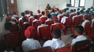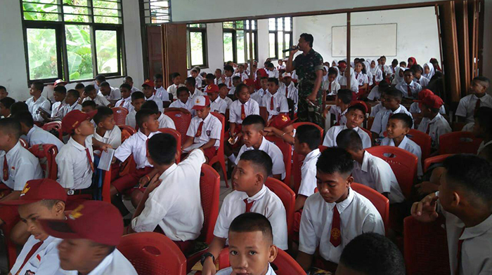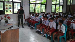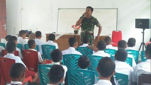 Sorong – Babinsa Kodim 1704/Sorong Sertu Sudirman turut serta dalam pelaksanaan MOS (Masa Orientasi Siswa) baru, kelas VII yang berjumlah 200 Orang, bertempat di SMP Negeri 14 Raja Ampat, Disttrik Waisai, Rabu (11/07/2018).