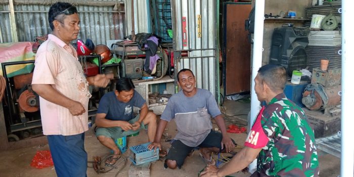 Disela-sela waktu istirahat Babinsa Serda Suriat Subekti mendatangi bengkel Las milik pak roji. “Perbincangan tidak jauh jauh dari segi keamanan lingkungan, motivasi dan pesan agar selalu berhati – hati dalam menggunakan listrik. Dengan adanya komsos yang dilakukan seperti ini, kami selaku aparat kewilayahan mampu menciptakan interaksi yang baik dengan warga sebagai pelaku usaha mikro di wilayah binaan.” Terangnya.