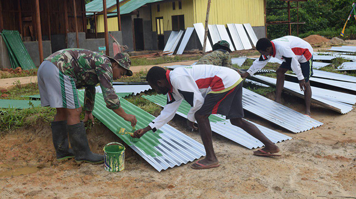 Anggota Satgas dengan masyarakat mereka bahu membahu dalam pengacatan seng. salah seorang masyarakat setempat mengatakan bahwa akan terus membantu Satgas TMMD ke – 1010 dalam pembangunan yang ada sampai selesai. “Kami semua, masyarakat kampung ini akan terus membantu bapak-bapak tentara dalam menyelesaikan setiap tugas mereka,” ujar Bapak Yakleb.