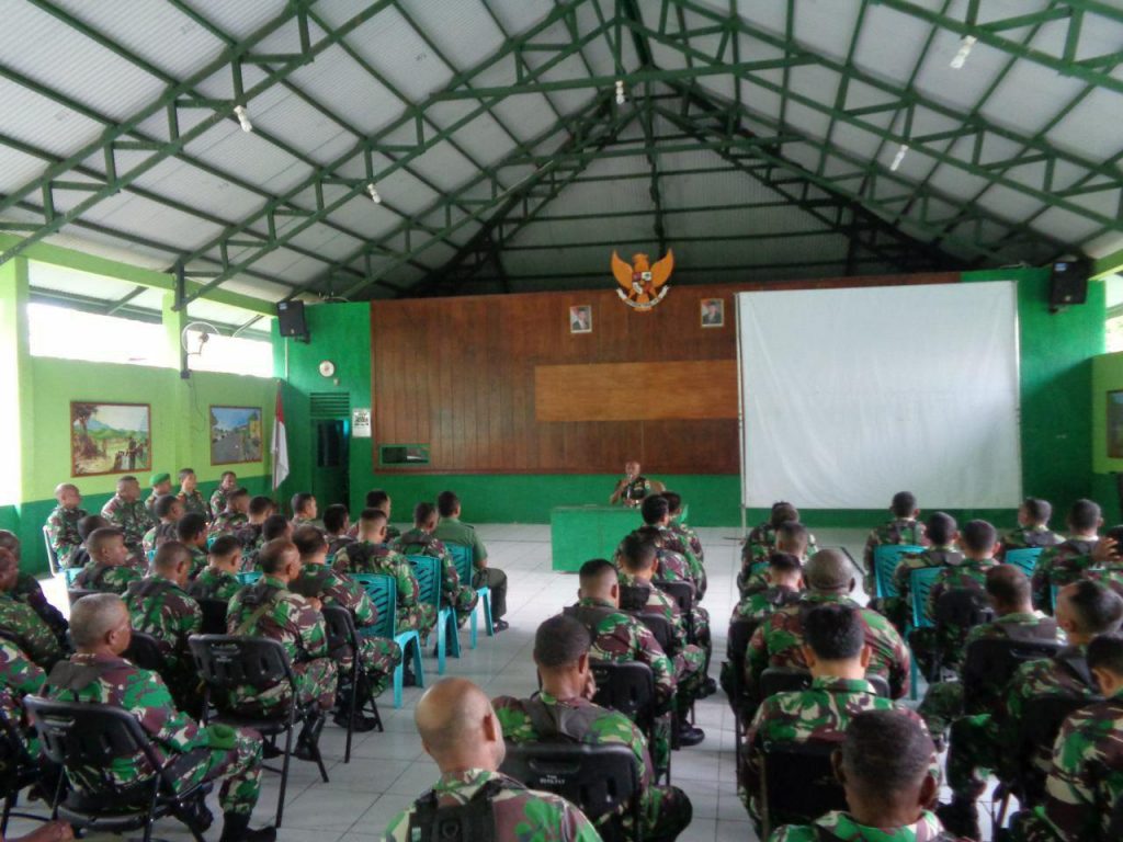 Kaimana – Dalam rangka terus membina dan memotivasi semangat para Prajurit Kodim 1804/Kaimana untuk menunjang tugas-tugas Binter di wilayah Kaimama guna mendukung tugas pokok satuan, setelah pelaksanaan upacara bendera setiap hari Senin yang di laksanakan bertempat di Lapangan Makodim 1804/Kaimana, setelah Upacara selesai seluruh Prajurit dan PNS Kodim 1804/Kaimana akan menerima Jam Komandan yang bertempat di Aula Makodim, Kepala Staf Kodim 1804/Kaimana memberikan jam komandan kepada seluruh anggota baik militer maupun PNS. Jam Komandan ini juga merupakan salah satu cara berkomunikasi secara langsung antara Komandan Kodim dengan seluruh anggota untuk mengetahui sejauh mana keberhasilan tugas maupun kondisi langsung para Prajurit maupun keluarganya (29/04/2019).