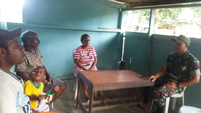Sorong – Mempererat tali silaturahmi dan kerja sama yang baik, Babinsa Koramil 1802-01/Sorong Timur melaksanakan Komunikasi Sosial (Komsos) dengan keluarga Bapak Tadius Ruamba wakil Ketua Rt 02/Rw 06 Kelurahan Klawalu Kota Sorong, Jumat (11/01/2019).