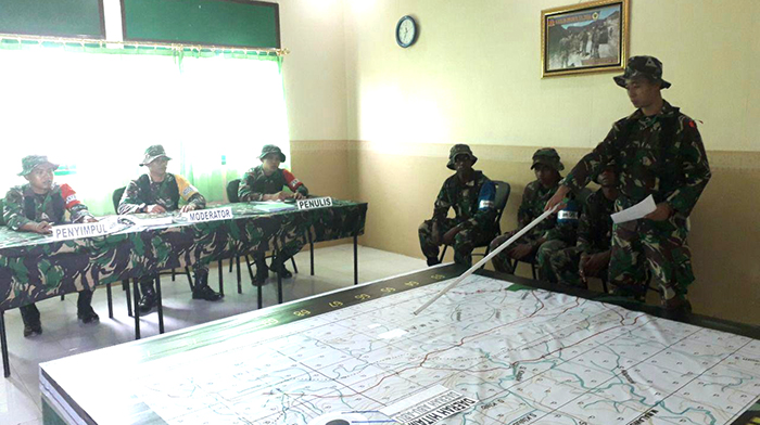 Kegiatan latihan peta tingkat peleton diikuti oleh 2 orang Komandan peleton Denzipur 13/PPA dengan penyelenggara 15 orang.