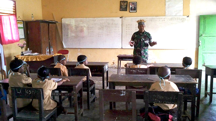 Kaimana – Bertempat di kampung Mandiwa, Distrik Arguni bawah, Kab. Kaimana, Tim Kelas inpirasi II kab Kaimana beserta Babinsa Sertu Sutarjo mimberikan motivasi dan semangat Belajar Kepada siswa siswi SD Ypk Mandiwa kampung Mandiwa Distrik Arguni bawah Kab Kaimana, Rabu (18/10/2017).