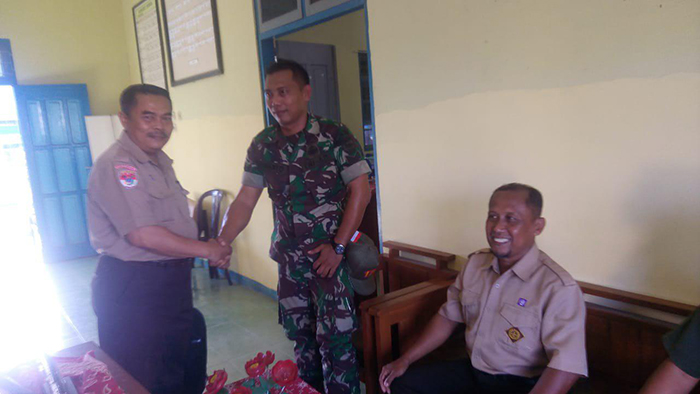 Bertempat di SMKN 1 Aimas Babinsa Kelurahan Malagusa Distrik Aimas Kramil 1704-01/Sorong Timur. Serka Sujito membangun komunikasi sosial (komsos) bersama kepala sekolah SMKN 1 Aimas. Bapak Sutikno S.pd beserta guru dan wali kelas tentang kegiatan pramuka. Sorong, Jumat (09/11/18).