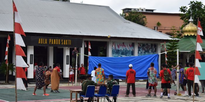 Sorong. Papua Barat Daya – Dalam rangka memeriahkan Hari Ulang Tahun (HUT) Kemerdekaan Republik Indonesia yang ke-79, Kodim 1802/Sorong menggelar pertandingan bola volli gembira menggunakan daster antar koramil di Lapangan Volli Makodim 1802/Sorong Jalan ahmad yani klademak kota sorong. Rabu (14/08/2024)