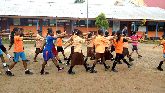 Sorong – Untuk membentuk kedisiplinan, melatih kekompakan dan loyalitas, menumbuhkan sikap jasmani yang tegap tangkas, rasa persatuan dan rasa tanggung jawab serta dapat dipercaya sejak dini, Babinsa Kampung Sailolof Koramil 1704-04/Seget Sertu Masud Arif, Melatih PBB di SD Negeri 1 Sailolof Kabupaten Sorong, Rabu (15/08/2018).