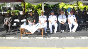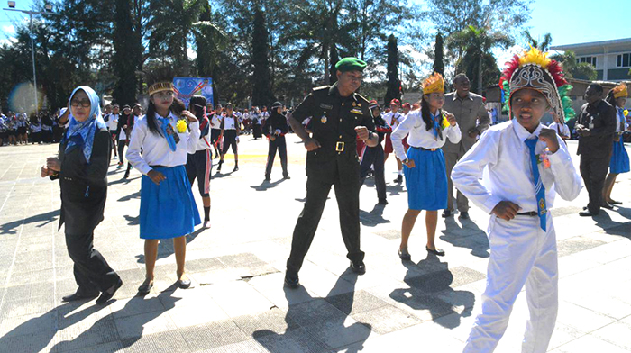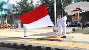 Sorong – Upacara Bendera peringatan Hari Pendidikan Nasional Tahun 2018 pemerintah Kota Sorong  dengan Irup Wali Kota Sorong Drs, Lambert Jitmau dihadiri oleh Wakil Wali Kota Sorong dr. Hjh, Pahima Iskandar, Ketua DPR Kota Sorong Dra. Petronela Kambuaya, Kepala Dinas Pendidikan Kota Sorong Dra, Hermin Matando, Kadsipora Kota Sorong Drs Fanik Tehupeory, S.sos, Kepala Lingkungan Hidup Yohanes Kambuaya, S.Hud, Kasipers Korem 171/PVT Kolonel Inf Rudi Andriono, S.I.P, Aspers Lantamal XIV Kolonel Mar Isa Ansory, Danpomal XIV Sorong Letkol Mar Hotmatua, serta para pimpinan SKPD Kota Sorong, bertempat di lapangan Kantor Walikota Sorong-Papua Barat, Rabu (02/04/18).