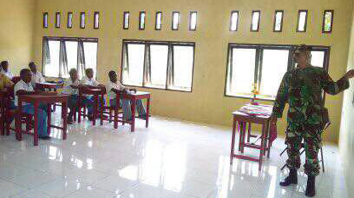 Sorong, Tambrauw – Anggota Koramil 1704-02/Sausapor Koptu Acon Frans melaksanakan Binwanwil dengan memberikan pengetahuan Wawasan Kebangsaan kepada siswa/siswi SMA Negeri Di Kampung Fef, Distrik Fef, Kab Tambrauw, Kamis (15/06/2017).