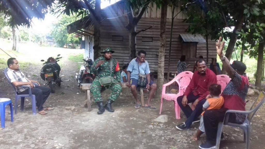 Manokwari – Ketertiban dan keamanan suatu wilayah adalah tanggung jawab bersama , setiap individu harus mempunyai kepedulian dan berupaya untuk menjaga keamanan di wilayahnya .Guna meningkatkan keamanan dan ketertiban wilayah,Pelda Sukar Danpos Ramil Tanah Rubuh dan Kopda S.Warijo Babinsa Koramil 1801-01/Manokwari melaksanakan Komunikasi Sosial (Komsos) bertempat kediaman Bapak Yosep Renggup Kepala kampung Warmaway dan kediaman Bapak Kaverius Kameubun yang merupakan Tokoh Agama di wilayah Distrik Tanah Rubuh kabupaten Manokwari, Jumat (11/01/2019).