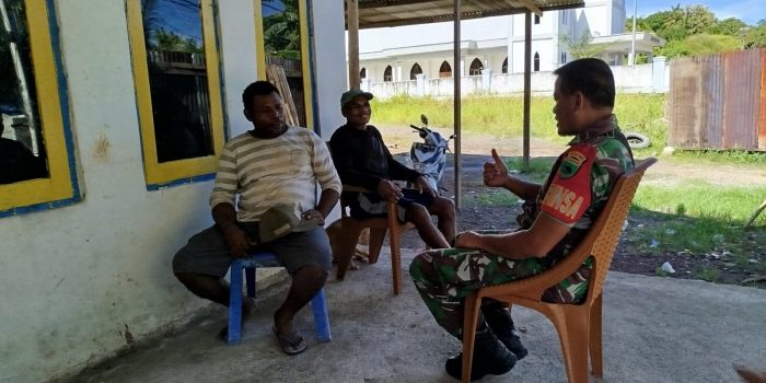 Seorang Babinsa Koramil 1802-02/Sorong Barat wajib memiliki kemampuan komunikasi sosial dengan seluruh komponen masyarakat di wilayah binaanya. Melalui komunikasi ini kami mengajak masyarakat untuk ikut berpartisipasi dalam menjaga keamanan dan ketertiban lingkungan. Apalagi menjelang kelancaran pesta demokrasi rakyat kondusifitas harus terjaga demi kelancaran pilkada serentak 2024.
