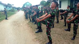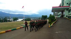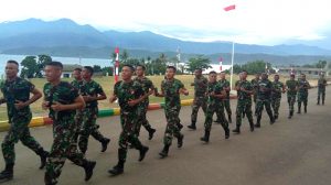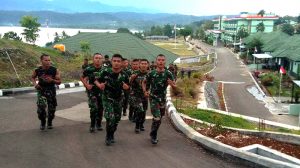 Sorong – Suara menggelegar terdengar sepanjang jalan dilengkapi ayunan tangan serta irama langkah kaki yang teratur dan terpadu mengiringi prajurit Yonif RK 752/VYS dalam pelaksanaan lari aerobik satuan yang dilaksanakan di Mako Yonif RK 752/VYS, Selasa (07/08).