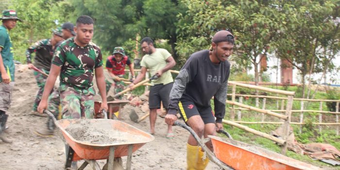 “Meskipun Terik Matahari dan hujan turun, kami tetap berkomitmen untuk menyelesaikan pekerjaan tepat waktu demi kesejahteraan warga khususnya di Kampung Kwau ini.” Tutupnya