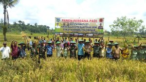 Sorong – Dalam rangka mendukung dan mensukseskan Program Pemerintah dalam Swasembada Pangan, Babinsa Koramil 14/Beraur membantu Petani memanen Perdana Padi hasil Cetah Sawah/Perluasan Lahan TA. 2017, Jumat (06/04/2018).