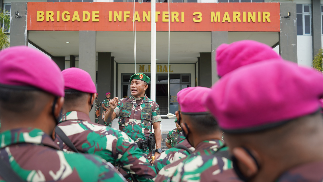 “Kalian adalah prajurit garda terdepan menjaga keutuhan kedaulatan NKRI, tugas adalah kehormatan lakukan tugas dengan baik, tulus dan ikhlas, TNI sebagai penjaga keutuhan NKRI harus selalu hadir dan tugas pengamanan pulau terluar adalah tanggungjawab kita semua dan ini adalah wujud pengabdian kita untuk bangsa dan negara yang kita cintai,” ucap Pangdam dalam sambutannya kepada prajurit Pasmar 3 yang disiapkan untuk Satgas Pam Puter di wilayah Timur Indonesia.