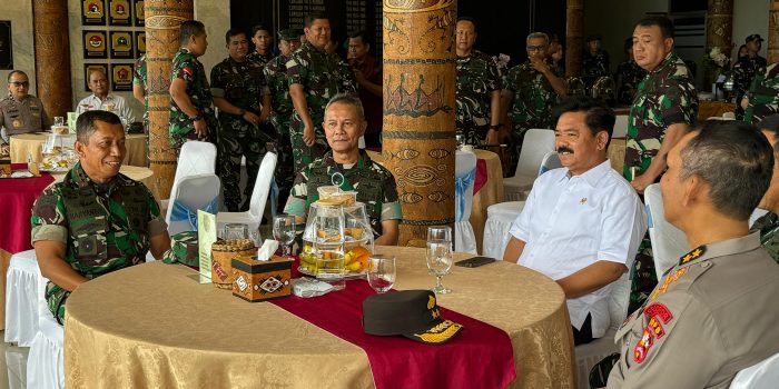 Manokwari. kasuari18-tniad.mil.id – Pangdam XVIII/Kasuari, Mayjen TNI Haryanto, S.I.P., M.Tr.(Han)., menghadiri pengarahan yang diberikan oleh Menteri Koordinator Bidang Politik, Hukum, dan Keamanan (Menko Polhukam) Marsekal TNI (Purn.) Hadi Tjahjanto kepada prajurit TNI dan Polri di wilayah Papua, Jayapura, pada Kamis (30/5/2024). Pengarahan ini bertujuan untuk memperkuat koordinasi dan sinergi antar aparat keamanan dalam menjaga stabilitas dan keamanan di wilayah Papua menjelang pesta demokrasi Pilkada serentak.