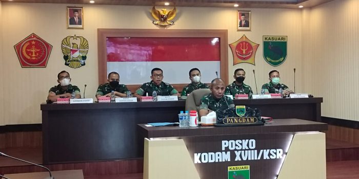 Hal ini disampaikan Pangdam XVIII/Kasuari saat menggelar rapat secara virtual dengan para Dansat jajaran Kodam XVIII/Kasuari, dari ruang Posko Kodam, Trikora, Arfai 1, Manokwari, Papua Barat, Jumat (4/3/2022).