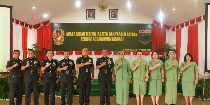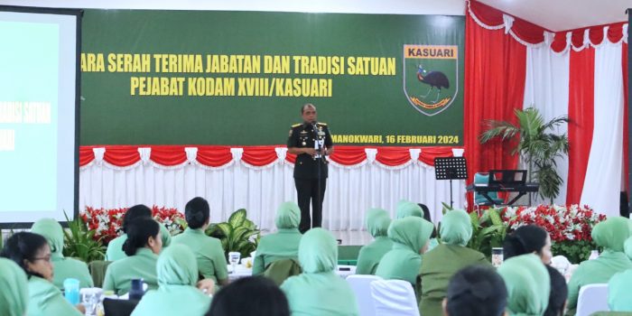 Hal ini disampaikan Pangdam XVIII/Kasuari, Mayjen TNI Ilyas Alamsyah, S.E., M.Tr.(Han)., CGCAE., dalam sambutannya pada acara serah terima jabatan tiga pejabat Kodam XVIII/Kasuari, di Aula Makodam, Trikora, Arfai 1, Manokwari, Papua Barat, pada Jumat (16/2/2024).