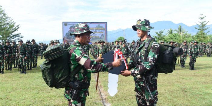 Manokwari. kodam18kasuari.tni-ad.mil.id – Pangdam XVIII/Kasuari, Mayjen TNI Gabriel Lema, S.Sos., terima langsung laporan kekuatan personel prajurit dari pimpinan satuan dan Kabalak yang ada di Lapangan Makodam XVIII/Kasuari, setelah itu dilanjut menonton secara virtual dari Videotron Upacara Hari Lahir 2022 dengan Irup Presiden RI Joko Widodo yang diselenggarakan di lapangan Pancasila Ende NTT, Rabu(1/6/2022).