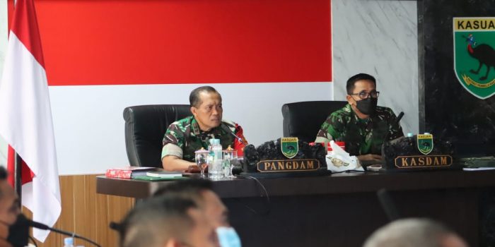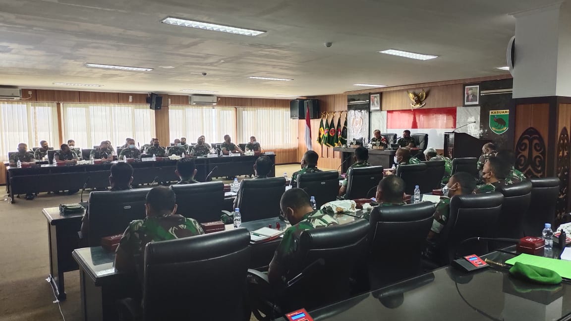 Kegiatan ini juga diikuti Kapoksahli Pangdam, Brigjen TNI Yusuf Ragainaga, para Asisten dan Kabalakdam XVIII/Kasuari serta diikuti secara virtual oleh Danrem 181/PVT, Danrem 182/JO dan Danbrigif 26/GP.