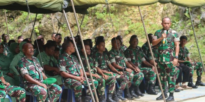 Kaimana. kodam18kasuari.tni-ad.mil.id – “Kedepan harus ada peningkatan dalam berbagai macam aspek namun tetapi untuk prajurit ada dua hal yaitu pembinaan satuan (Binsat) dan pembinaan territorial (Binter). Berbicara Binsat dengan segala keterbatasan dan umur satuan dalam kondisi apapun di dalam pikiran dan hati kita hanya tugaslah yang paling utama, agar memastikan wilayah NKRI baik itu kedaulatannya tetap terjaga kemudian yang kedua kita harus terus memastikan perlindungan terhadap bangsa yaitu masyarakat”.