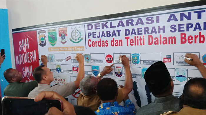Pada Era Globalisasi adanya Ancaman perang Modern yaitu perang tanpa menggunakan Senjata atau kekuatan militer atau disebut dengan Proxy War yaitu dengan merusak sendi-sendi kehidupan berbangsa dan bernegara contohnya adalah isu sara, narkoba dan terorisme dll, selain itu Pangdam XVIII/Kasuari Mayjen TNI Yoppye Onesimus Wayangkau mengucapkan sangat berterima kasih kepada Pemda atas kerjasamanya selama ini dalam menjaga keamanan di Wilayah Papua Barat dan juga berpesan kepada seluruh Bupati/Walikota agar menjaga SDA yang ada di Papua Barat di kelola dengan baik untuk kesejahteraan masyarakat yaitu dengan mengedepankan Pendidikan. Setelah acara selesai di lanjutkan dengan penanda tanganan Deklarasi Anti Hoax seluruh pejabat di Daerah Papua Barat cerdas dan teliti dalam berbagi Informasi lewat medsos.