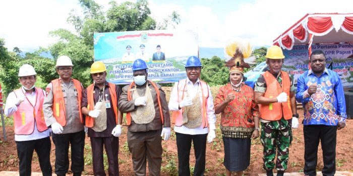 Manokwari. kodam18kasuari.tni-ad.mil.id – Pangdam XVIII/Kasuari, Mayjen TNI Gabriel Lema, S.Sos., ikut ambil bagian dalam kegiatan peletakan batu pertama pembangunan kantor Dewan Perwakilan Rakyat Provinsi Papua Barat, di Andai, Distrik Manokwari Selatan, Kabupaten Manokwari, Rabu (4/5/2022). Selain Pangdam proses peletakkan batu pertama juga dilaksanakan oleh Gubernur Provinsi Papua Barat, Drs. Dominggus, Mandacan, Ketua DPR Provinsi Papua Barat, Orgenes Wonggor, S.I.P., Wakapolda Papua Barat, Brigjen Pol Patrige R. Renwarin S.H., M.Si.