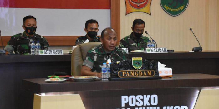 Manokwari. kodam18kasuari.tni-ad.mil.id – Pangdam XVIII/Kasuari Mayjen TNI Gabriel Lema, S.Sos ikuti pencanangan secara serentak secara vikon TNI AD Manunggal air oleh Kasad Jenderal TNI Dudung Abdurachman, S.E.,M.M., di Ruang Posko Kodam, Arfai I Manokwari, Kamis (24/3/2022).