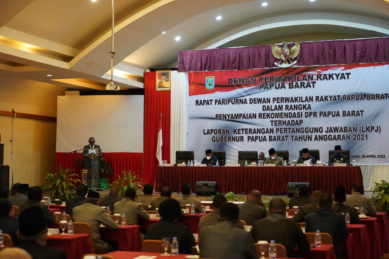 Rapat paripurna ini dipimpin langsung Wakil Ketua II DPR Papua Barat, H. Saleh Siknun didampingi Wakil Ketua I, Ranley Mansawan dan Wakil Ketua III Yongky Fonataba. Dari unsur Pemerintahan hadir Gubernur Papua Barat Dominggus Mandacan dan Forkopimda Papua Barat.