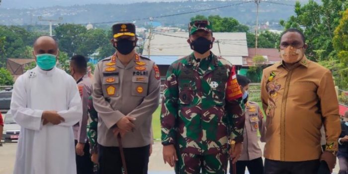 MANOKWARI, primarakyat.com – Pangdam XVIII/Kasuari, Mayjen TNI I Nyoman Cantiasa, S.E., M.Tr.(Han), Kapolda Papua Barat, Irjen Pol. Dr. Tornagogo Sihombing, SIK.M.Si, dan Bupati Manokwari, Hermus Indou melaksanakan patroli di wilayah Kota Manokwari, Jumat (2/4/2021) untuk memastikan kegiatan warga masyarakat dalam melaksanakan ibadah Paskah di dua gereja yang berada di Manokwari, Papua Barat (Katolik dan Protestan) berjalan aman.
