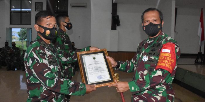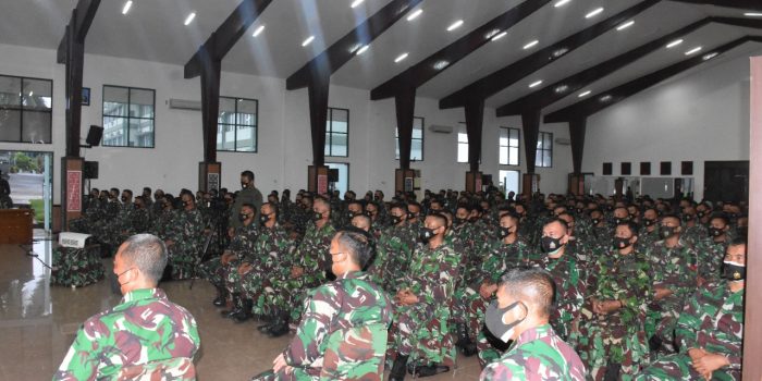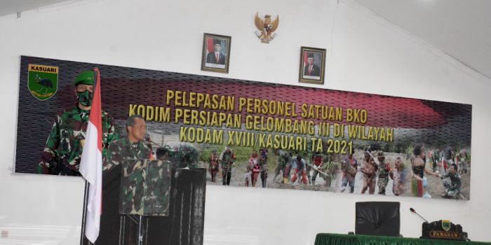 Manokwari. kodam18kasuari.tni-ad.mil.id – Pangdam XVIII/Kasuari melepas 412 personel Satuan Bawah Kendali Operasi (BKO) aparat teritorial (Apter) Kodim Persiapan Gelombang III Kodam XVIII/Kasuari TA. 2020 karena telah memasuki purna tugas di aula Makodam XVIII/Kasuari, Trikora, Arfai 1, Manokwari, Papua Barat, Jumat (16/7/2021).