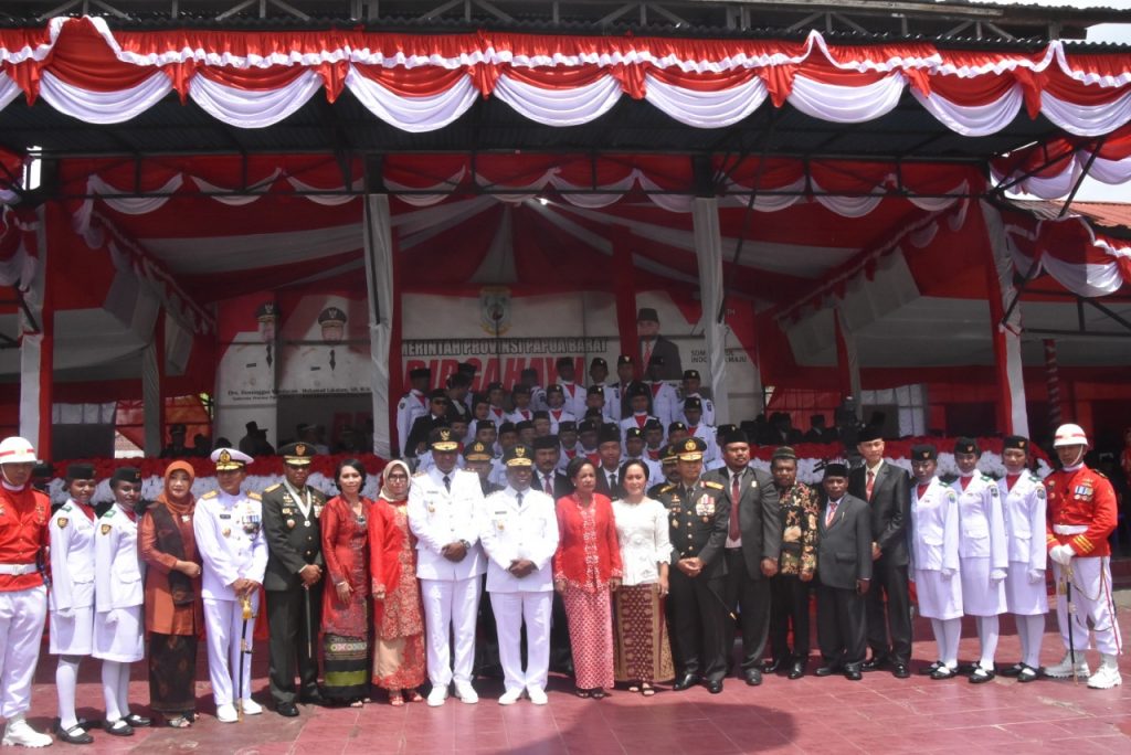 Selaku Inspektur Upacara Gubernur Papua Barat Drs. Dominggus Mandacan dan peserta upacara dari personel TNI, Polri, ASN, Mahasiswa, Pelajar, SAR dan Ormas di Manokwari.