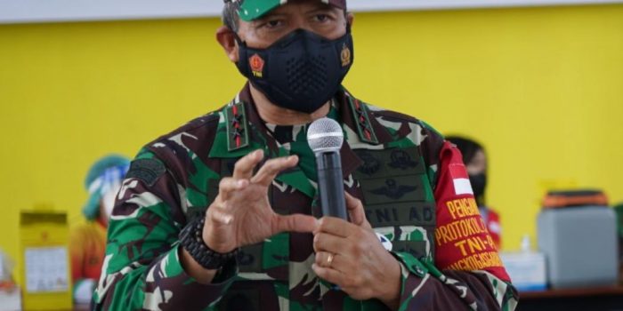 “Segera laksanakan serbuan vaksin baik anggota sendiri maupun masyarakat, berikan edukasi dan sosialisasi terkait vaksin, atur bagaimana penyekatan-penyekatan yang ada diwilayah masing-masing intinya dengan memberikan pemahaman yang baik terhadap masyarakat dengan cara humanis,” tegas Pangdam.