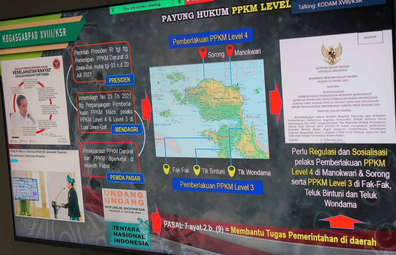 “Saat ini kegiatan PPKM Darurat diubah istilahnya menjadi PPKM level 4 sedangkan PPKM diperketat diubah menjadi PPKM level 3. Di wilayah Papua Barat, PPKM level 4 diberlakukan di Manokwari dan Sorong, sedangkan level 3 diberlakukan di wilayah Fakfak, Teluk Bintuni dan Teluk Wondana,” imbuhnya.