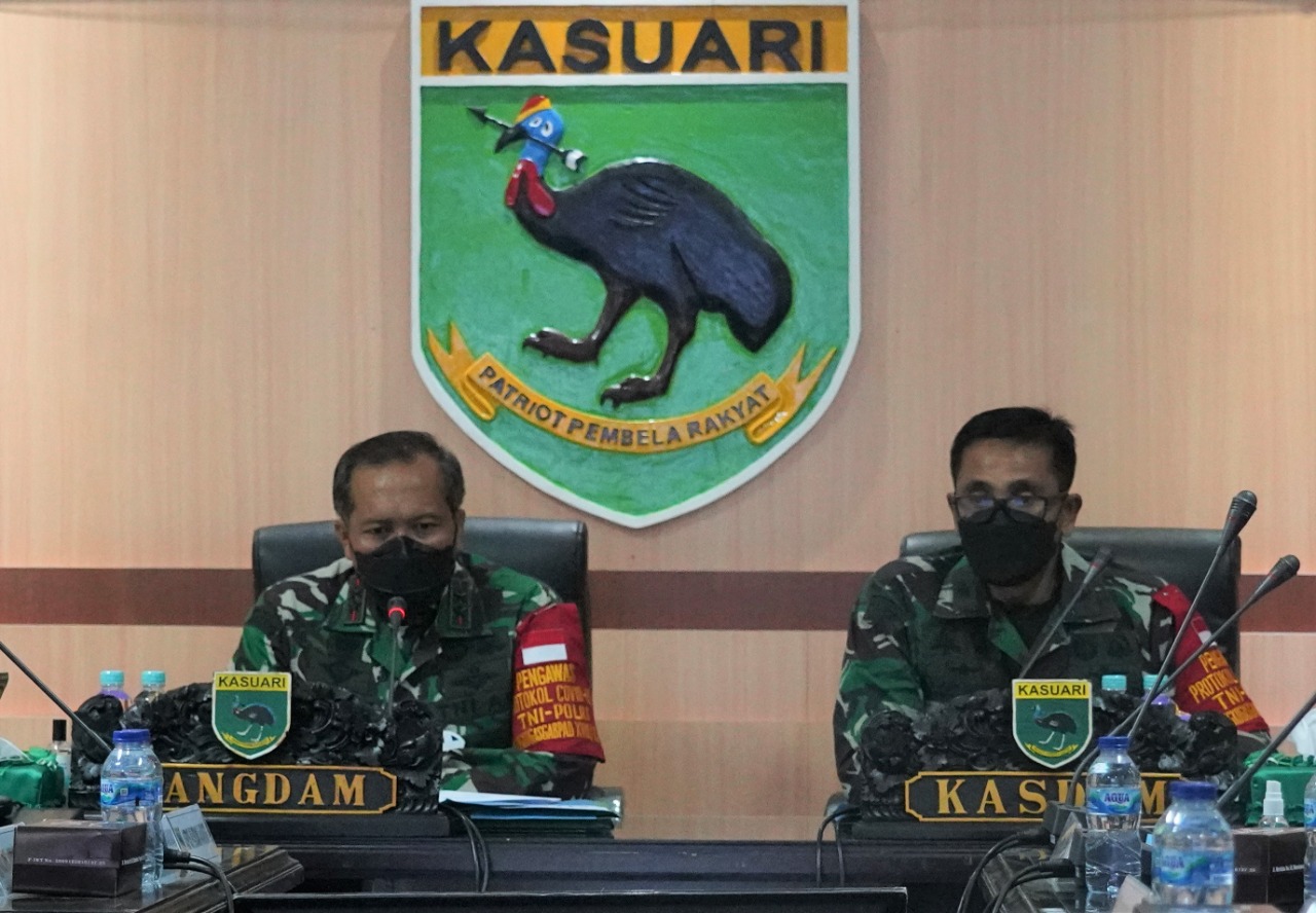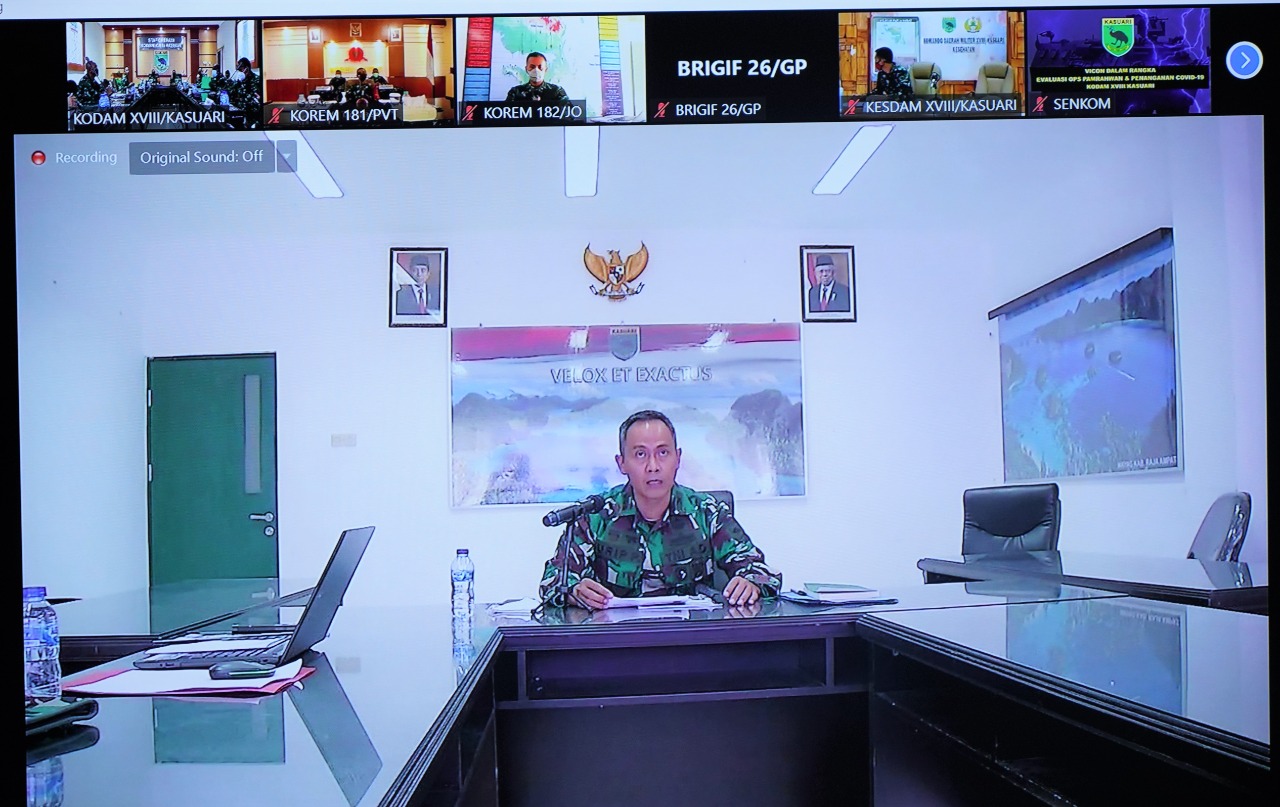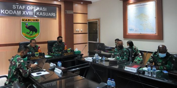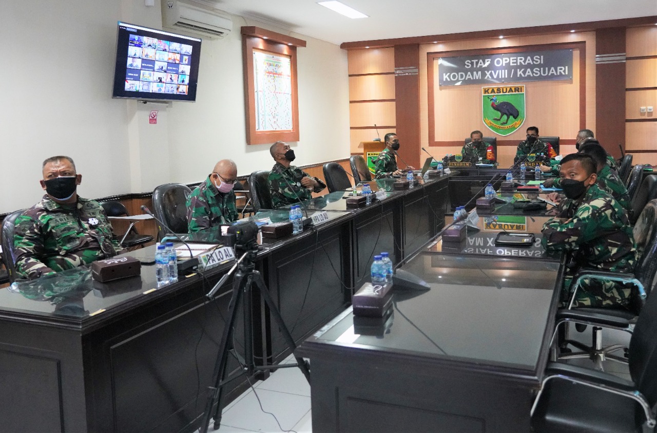 Rapat secara virtual ini diikuti oleh Kasdam XVIII/Kasuari, Brigjen TNI Djoko Andoko dan para Komandan Satuan dijajaran Kodam XVIII/Kasuari.