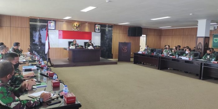 Manokwari. kodam18kasuari.tni-ad.mil.id – Pangdam XVIII/Kasuari, Mayjen TNI I Nyoman Cantiasa, S.E., M.Tr.(Han) didampingi Kasdam XVIII/Kasuari, Brigjen TNI Djoko Andoko memimpin rapat evaluasi pelaksanaan Program Kerja dan Anggaran (Progjagar) Kodam XVIII/Kasuari semester I TA. 2021 bertempat di ruang Yudha Makodam XVIII/Kasuari, Trikora, Arfai 1, Manokwari, Papua Barat, Senin (28/6/2021).