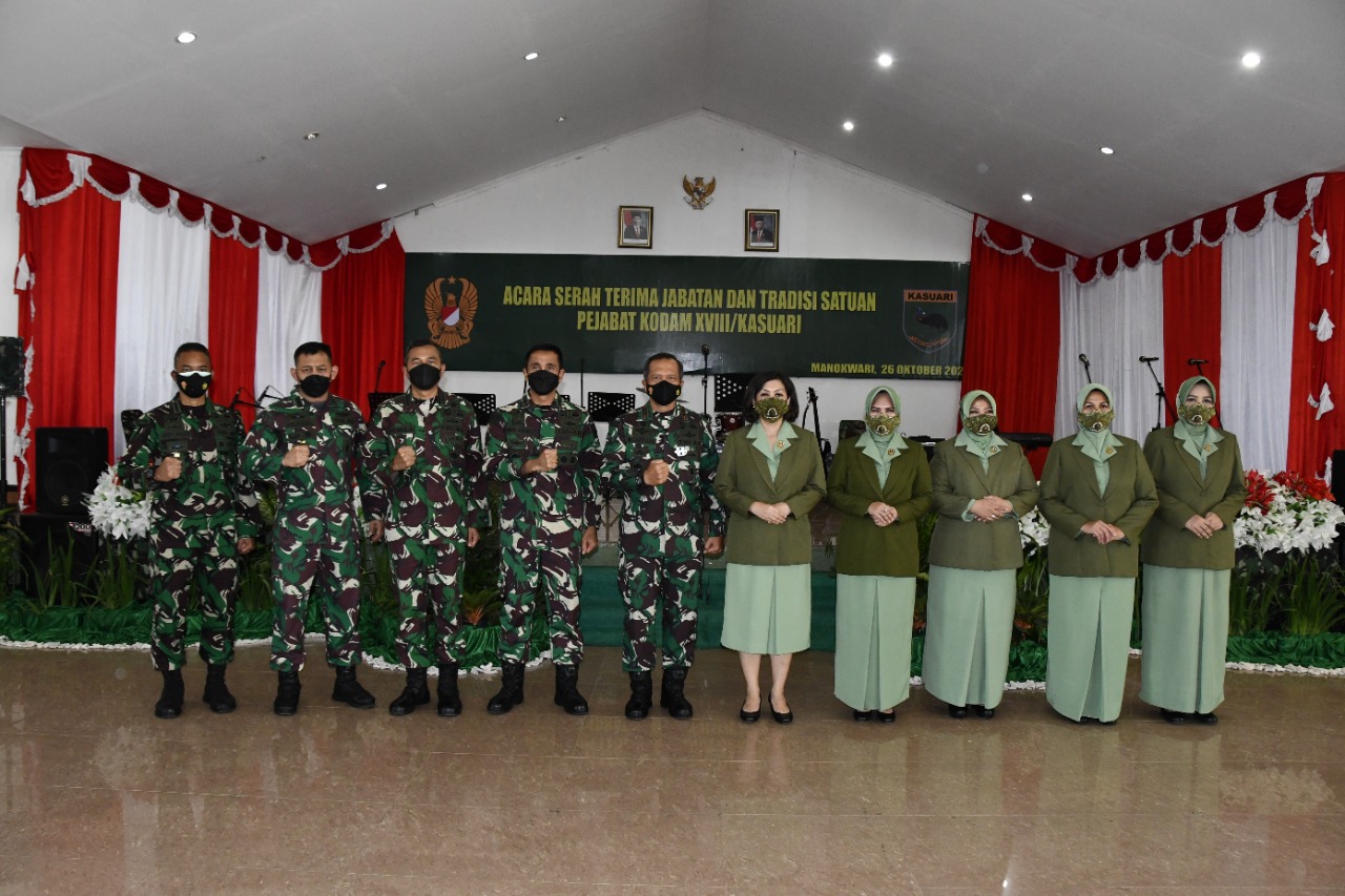 Jabatan tersebut yaitu Danrindam XVIII/Kasuari dari Kolonel Inf Choirul Anam, S.E. kepada Kolonel Inf Surya Wibawa Suparman, Dandim 1801/Manokwari dari Kolonel Arm Airlangga kepada Kolonel Inf Suharma Zunam, S.A.P., M.SI. dan Asops Kasdam XVIII/Kasuari dari Kolonel Inf Lucky Avianto, S.I.P., M.Si. kepada Kolonel Inf Ade David Siregar, S.I.P.