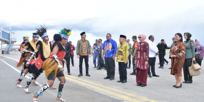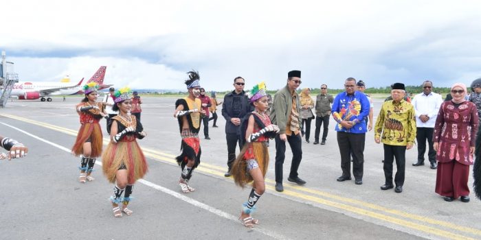Kedatangan Wakil Presiden bersama dengan rombongan dalam rangka kunjungan kerja di wilayah Sorong Provinsi Papua Barat Daya dengan menggunakan pesawat TNI AU Type : C – 130.
