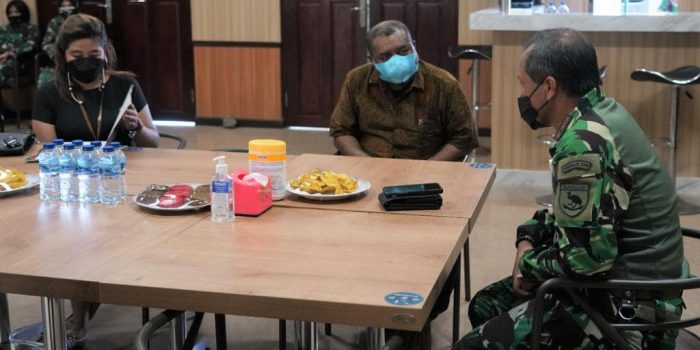 Manokwari. kodam18kasuari.tni-ad.mil.id – Pangdam XVIII/Kasuari, Mayjen TNI I Nyoman Cantiasa, S.E., M.Tr.(Han) menerima audiensi dari Branch Manager Bank Mandiri Manokwari, Yohanis Rumbekwan, di Officer’s Mess, Makodam XVIII/Kasuari, Trikora, Arfai 1, Manokwari, Papua Barat, Rabu (21/7/2021).