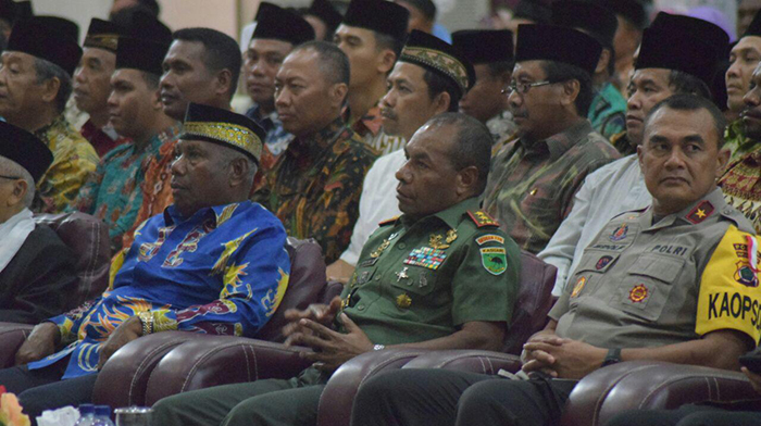 Raja Ampat – Pangdam XVIII/Kasuari, Mayjend TNI Joppye Onesimus Wayangkau menghadiri pembukaan Rapat Kerja Nasional Majelis Ulama Indonesia (Rakernas MUI) ke-IV di Pari Waisai Kabupaten Raja Ampat Papua Barat, yang dibuka oleh Gubernur Papua Barat, Drs. Dominggus Mandacan, Kamis malam (22/11/2018). sekitar pukul 22.00 WIT yang diikuti ± 500 orang
