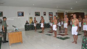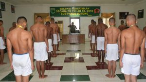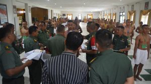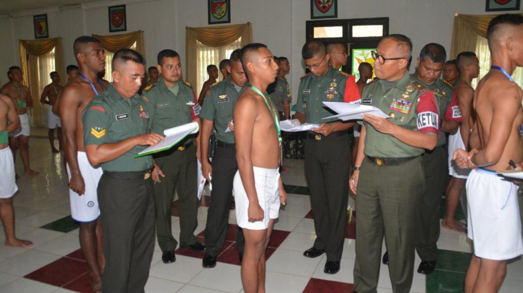 Sorong – Danrem 171/PVT Brigjen TNI Ignatius Yogo Triyono, M.A., memimpin pelaksanaan Pantohir Penerimaan Calon Secaba PK TNI AD Sub Panda Sorong TA 2018 yang dihadiri oleh Kasi Pers Korem 171/PVT Kolonel Inf Rudi Andriono, S.I.P., M.A.P., Waka Ajenrem 171/PVT Kapten Caj Rudi Gayo, Kajas Korem 171/PVT Kapten Inf Bambang Triyono, bertempat di Aula Praja Vira Tama Korem 171/PVT Jl. Pramuka No. 1 Sorong-Papua Barat, Rabu (12/09/2018).