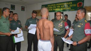 Sebelumnya animo pendaftar sebanyak 227 orang dan dalam pelaksanaannya ada berbagai macam rangkaian tes seleksi dengan sistem gugur seperti administrasi, Kesehatan, Jasmani dan MI. Yang berhasil lolos untuk mengikuti pantohir Sub Panda Sorong sebanyak 93 orang dan setelah pelaksanaan Pantohir Calon Secaba PK TNI AD Sub Panda Sorong dinyatakan lolos sebanyak 29 orang selanjutnya melaksanakan seleksi tingkat pusat di Kodam XVIII/Kasuari.