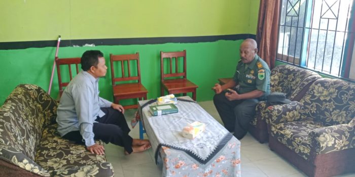 Kapten Inf Yosias Waimbo, Pasi Bin Komsos Korem 182/JO Melaksanakan Komunikasi Sosial (Komsos) dengan Kepala Pondok Pesantren Hidayatullah Fakfak, di Jalan Sekru, Fakfak, Papua Barat, Selasa , (18/2/2025).