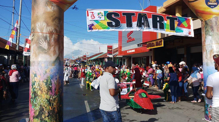 Kaimana – Bertempat di Taman Kota Kab. Kaimana, Jln. Trikora, Distrik Kaimana, Kab. Kaimana, Provinsi Papua Barat telah dilaksanakan kegiatan Pawai Karnaval dalam rangka memeriahkan HUT Proklamasi yang ke-73 dengan tema “Kerja Kita Prestasi Bangsa” yaitu dengan mempersatukan keberagaman, bersama memantapkan pembangunan berkelanjutan dengan mewujudkan Kaimana yang Mandiri, Sehat, Cerdas, Ungul dan Sejahtera, yang diikuti -+ 1200 orang, Sabtu (18/08/2018).