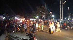 Peserta Pawai obor tiba di Jl. Trikora Taman Kota Rangkaian kegiatan selesai dan stuasi berjalan dengan aman dan lancar.