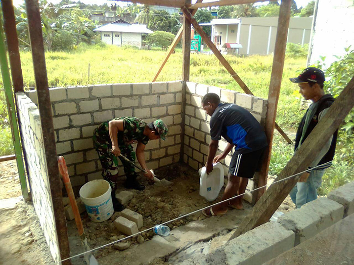 Peduli Akan Kesulitan Warganya, Babinsa Bersama Warga Binaan Melaksanakan Karya Bakti Pembuatan Jamban