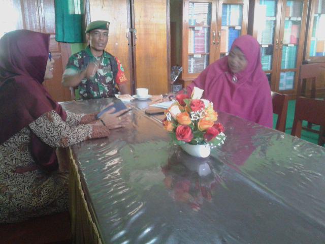 Kehadiran Babinsa ini langsung di terimah oleh Wakil Kepala Sekolah Ibu Nurhaeni, SE,MM, berserta para Guru Pengajar. Dalam kesempatan tersebut Babinsa menghimbau dan mengajak kepada para Guru untuk selalu menciptakan suasana sekolah sebagai sarana belajar-mengajar serta manyampaikan kepada para siswa untuk menjauhkan diri dari hal-hal yang negatif seperti aksi tawuran antar pelajar Miras dan Narkoba.