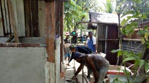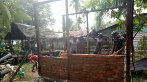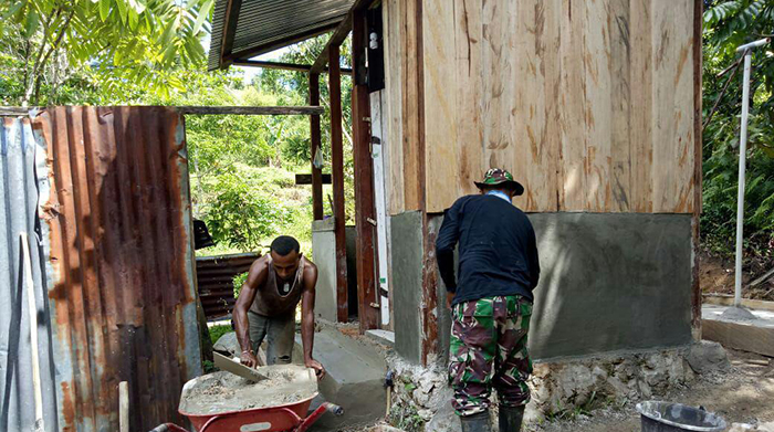 Anggota Koramil 1704-03/Salawati Kopda Wahidin bersama warga binaan melaksanakan Kegiatan gotong royong pembuatan jamban yang dilaksanakan di rumah warga kurang mampu, Sorong, Kamis (21/06/2018).