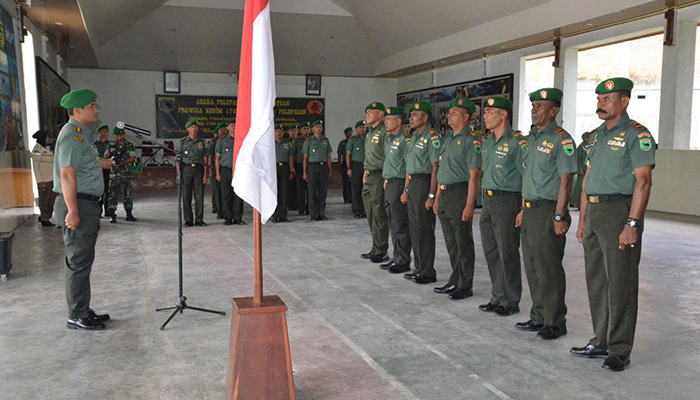 98Sorong – Pindah kesatuan adalah hal yang biasa dalam rangka memenuhi kebutuhan personil dijajaran tubuh Angkatan Darat, seperti halnya yang dilaksanakan di jajaran Kodim 1704/Sorong yang melakukan pelepasan tujuh orang Perwira terbaiknya bertempat di aula Pandu Sakti Makodim 1704/Sorong, Rabu Siang (15/08/2018).