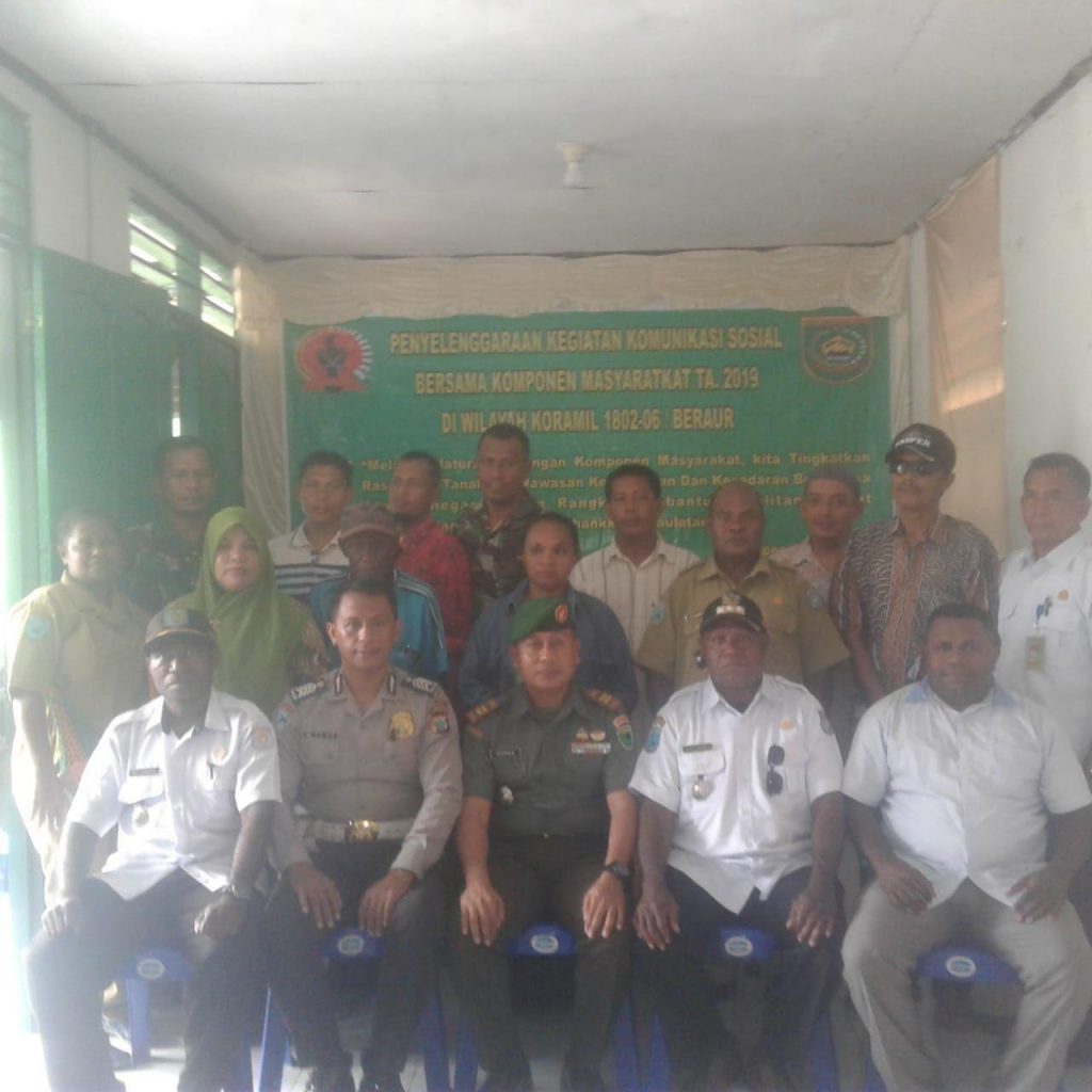 Kegiatan Komsos bersama Komponen Masyarakat ini diselenggarakan bertempat di aula Makoramil 1802-06/Beraur. Adapun yang hadir dalam pelaksanaan tersebut adalah Kapolsek Beraur diwakili oleh Bripka La Hanisa, Kepala Distrik Klamono Bapak Yoel Kemesfle, Kepala Distrik Malabotom Bapak Manase Eyergit, Para Kepala Kampung Sedistrik Klamono, Distrik Klasafet dan Distrik Malabotom, Tokoh Adat, Tokoh, Agama, Tokoh Masyarakat, Tokoh Pemuda dan Tokoh Perempuan serta Masyarakat setempat.