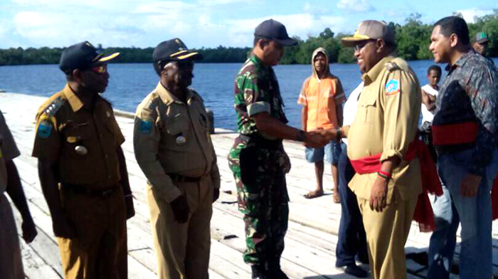 Sorong – Danramil 1704-11/Inanwatan Letda Inf Sakarias Ergor bersama Babinsa Kampung Sibae Pelda Alex Arloey menerima kunjungan Kerja Bupati Kab Sorong Selatan, Samsudin Anggiluli, S.E., diwilayah Imekko, Kab Sorong Selatan, Selasa (06/06/2017).